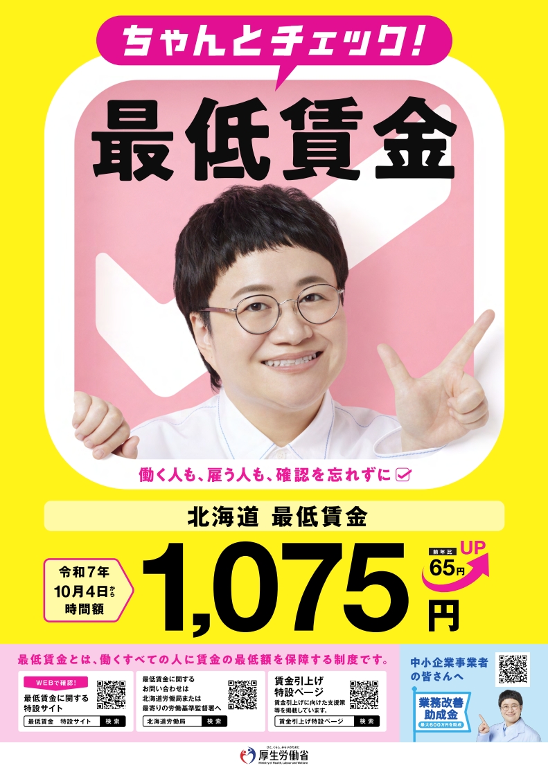 北海道は10/4から最低賃金を1,075円に改正する。